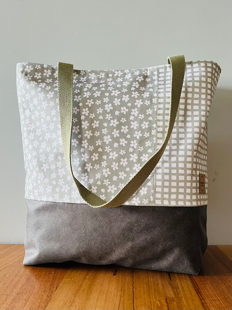 Fabric Tote Bag- Daisy Garden (Meadow Green colour)