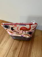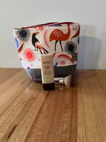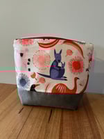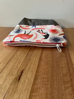 Fabric is cotton linen and is designed by Jocelyn Proust. ( Australia) Inside of zipper bag is lined with calico. Note colour of matching zipper is red and white.