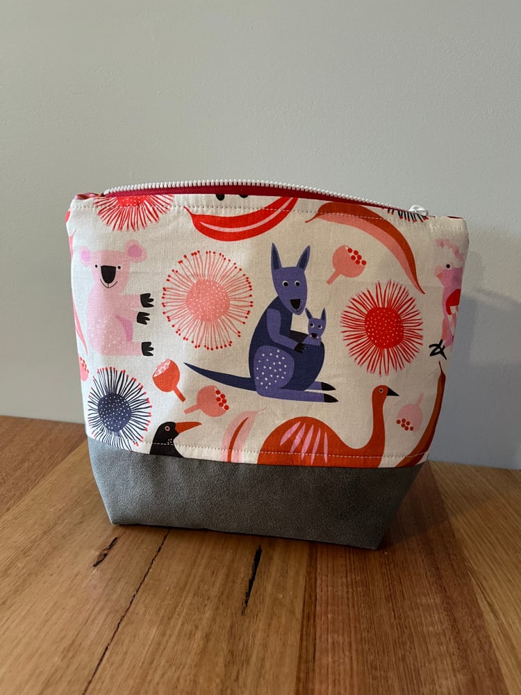 Fabric Zipper Pouch - Emu, Magpie, Kangaroo