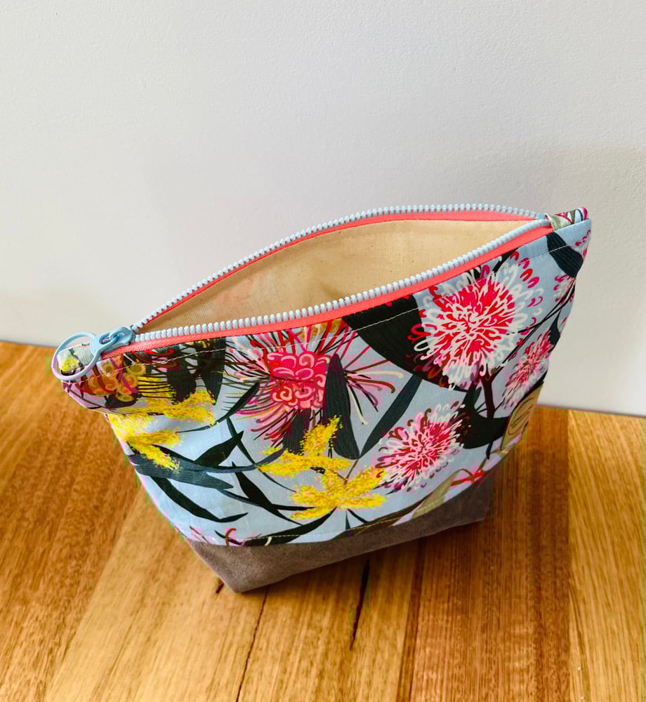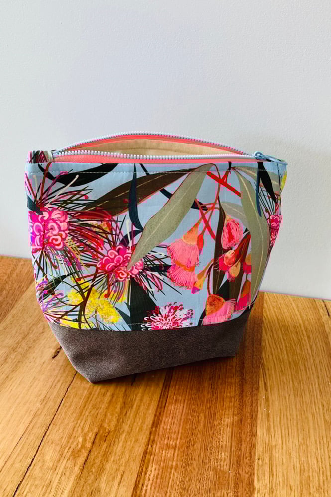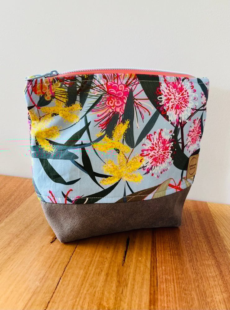 Fabric Zipper Pouch - Pink/Yellow/Blue Australian Flora