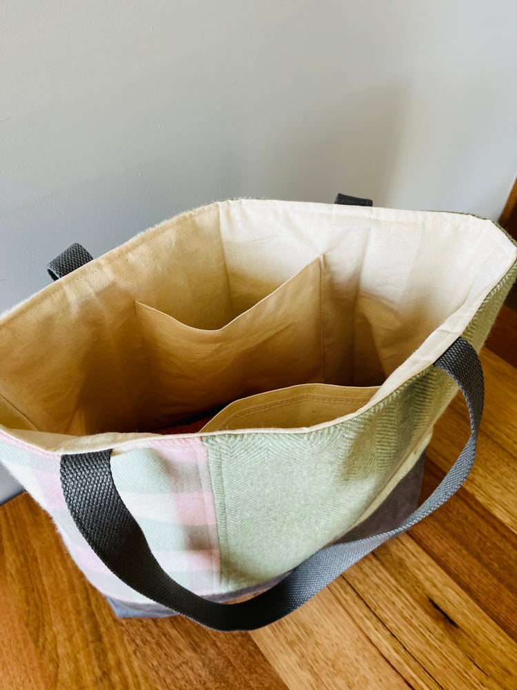 This tote bag is sewn with Waverley Mills Launceston fabric. Fabric is so soft, designed and made for baby blankets.