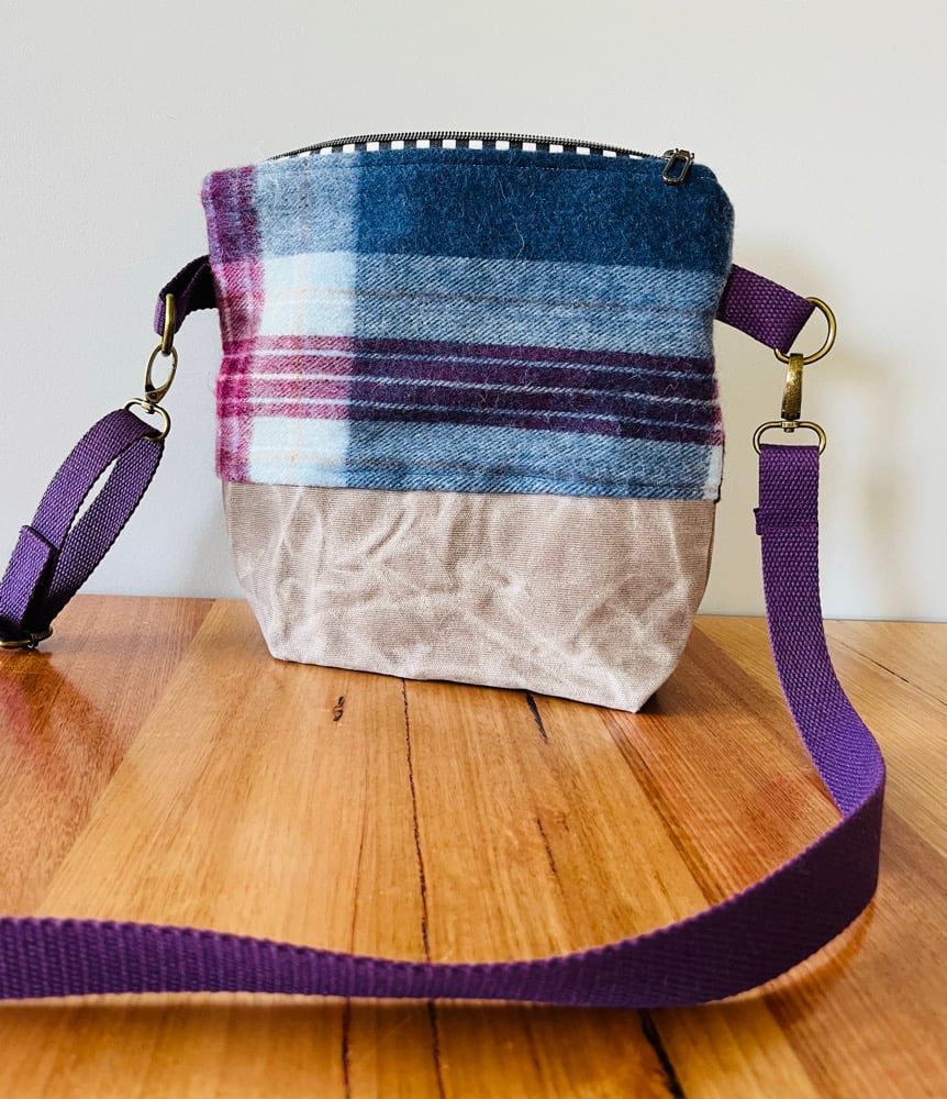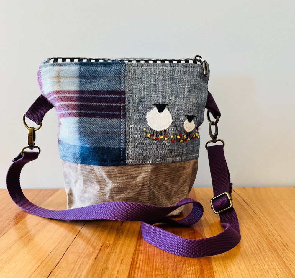 Purple/Blue Tartan- 2 Sheep Shoulder Bag