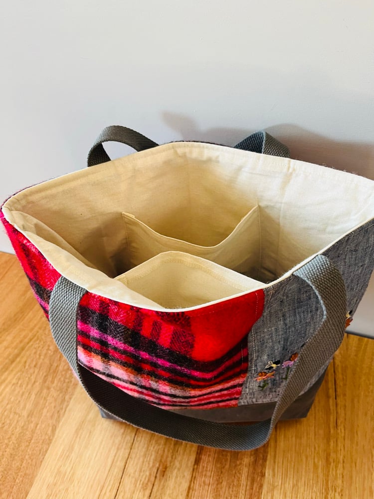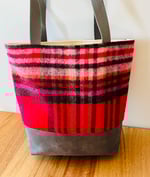 This Blanket fabric used in this tote bag is called St Ives Check-Red and originates from the UK, being made in a wool mill there.